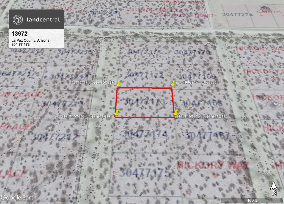 Parcel No.1-Lot 173, Castle Lakes, Unit 1, according to the plat of record in the office of the County Recorder of Yuma(now La Paz)County,AZ, recorded in Book6 of Plats, Pg.18. Parcel No.2-The Westerly 8 feet of abandoned 16 foot alleyway, per La Paz Board of Supervisor's Resolution No 2012-32, recorded Dec 27,2012 at Fee No.2012-06328, adjacent to Lot 173, Castle Lakes, Unit 1 according to the plat of record in the office of the County Recorder of Yuma (now La Paz) County, AZ recorded in Book 6 of plats, Pg. 18. |
