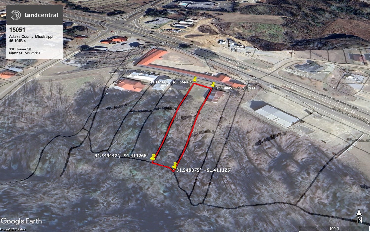 This land in Natchez, Adams County, MS has loads of potential to be your dream home. The lot is just over half a mile from the Mississippi River and is in a great spot across from the Deluxe Inn. Perfect for either a home or investment opportunities, it will be a peaceful break from the big city with loads of history nearby.