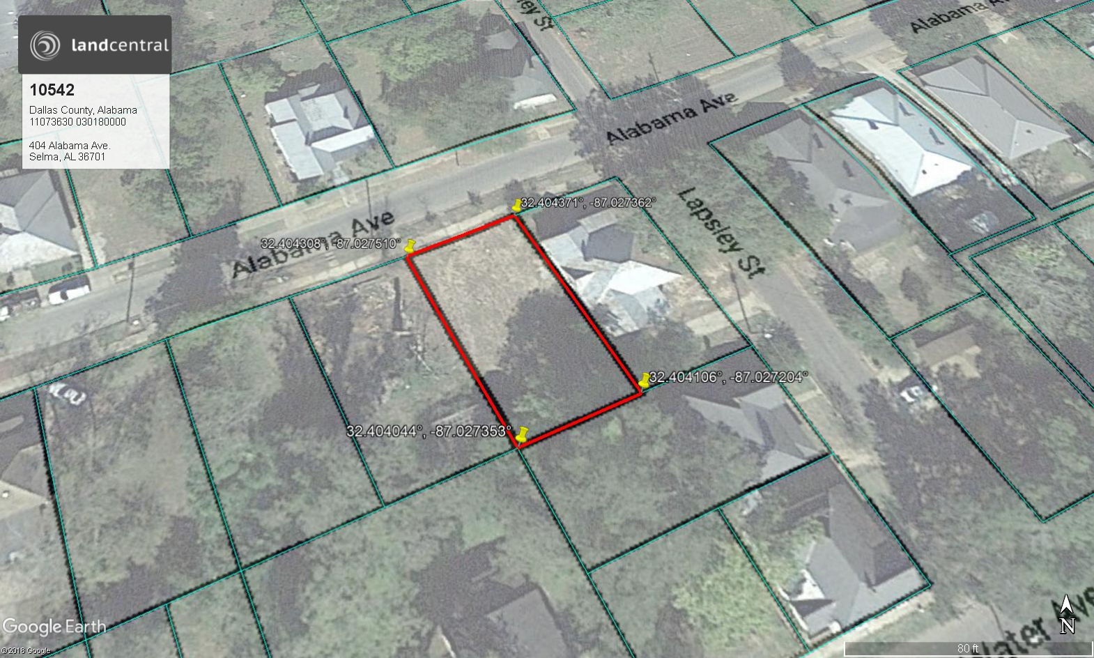 BEG 50.3'W OF S/L ALABAMA AVE & W/L LAPSLEY ST; W50.3'; S108.3'; E50.3'; N108.3' POB LT 2 BLK 19 MRS DC RUSSELL MAP PG 11 S36-T17-R10 DB1072 PG 164 |