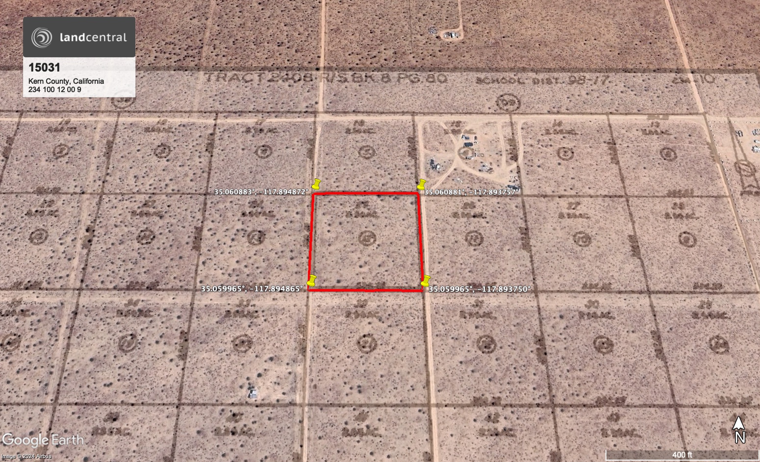 LOT 25 OF TRACT 2408, IN THE UNINCORPORATED AREA OF THE COUNTY OF KERN, STATE OF CALIFORNIA, AS SHOWN ON RECORD OF SURVEY RECORDED MAY 26, 1961 IN BOOK 8, PAGE 80 OF RECORDS OF SURVEY, IN THE OFFICE OF THE COUNTY RECORDER OF SAID COUNTY. |