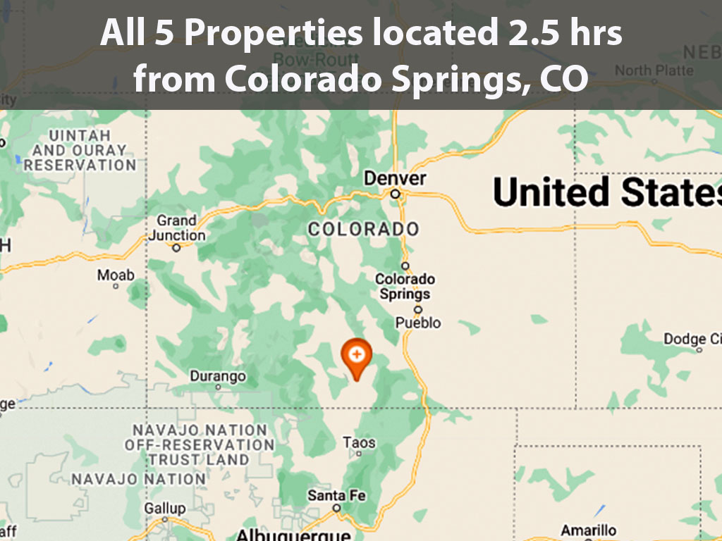 Month after month Colorado continues to be one of the most popular states for purchasing vacant land. Colorado has so much to offer and appeals to every type of land buyer. Fresh air, an abundance of outdoor activities, a growing economy and friendly people are just a few of the things that make this state so appealing. These five parcels are just outside of the town of Blanca in the southernmost portion of the state. Colorado Springs is about a two and a half hour drive away. Do not miss your chance to invest in this great state at such a fantastic value!