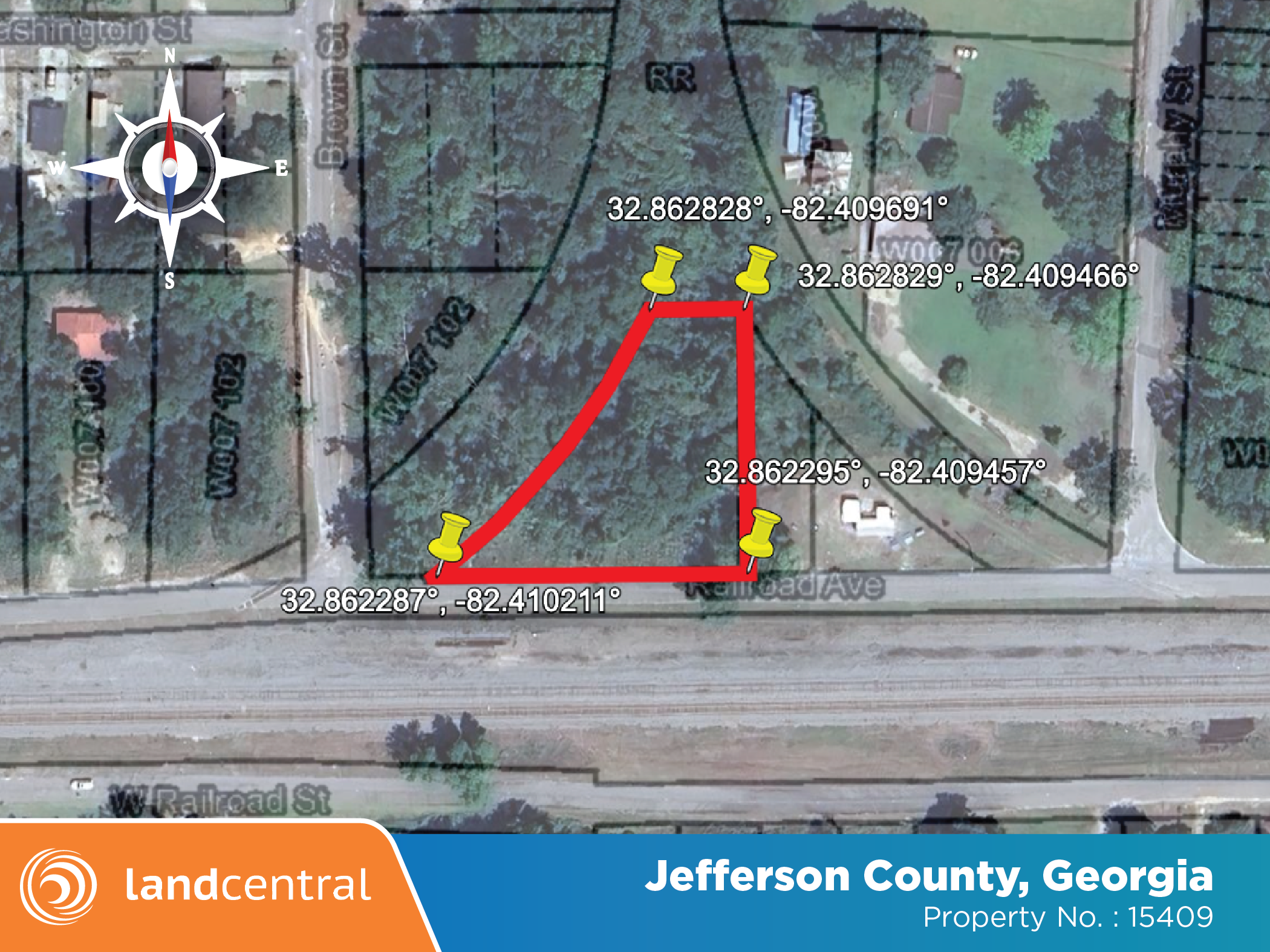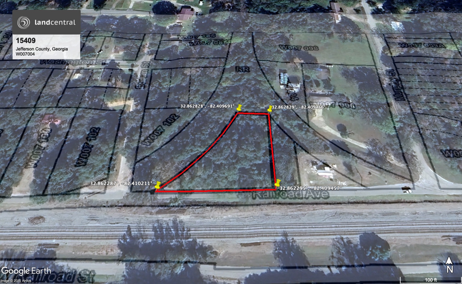 All that tract, or lot located in the Town of Wadley, 83rd District, G.M of Jefferson County, Georgia, bounded on the North and West by the Louisville and Wadley Railroad Right of Way, on the East by lot now or formerly owned by Ella Perry, South by the Central of Georgia Railroad Right of Way, formerly known as the George Howard House and Lot, and being the same property conveyed to Emma Gould by Dr. W.B. Holmes by deed recorded in the Office of the Clerk of Jefferson County, Georgia, in Deed Book QQ. Page 40 and being the identical property that was conveyed from Emma Gould to Jack J. Hayles and Luverta F. Hayles, said deed being recorded in the Office of the Clerk of Jefferson County, Georgia in Deed Book 31 at Page 14. |