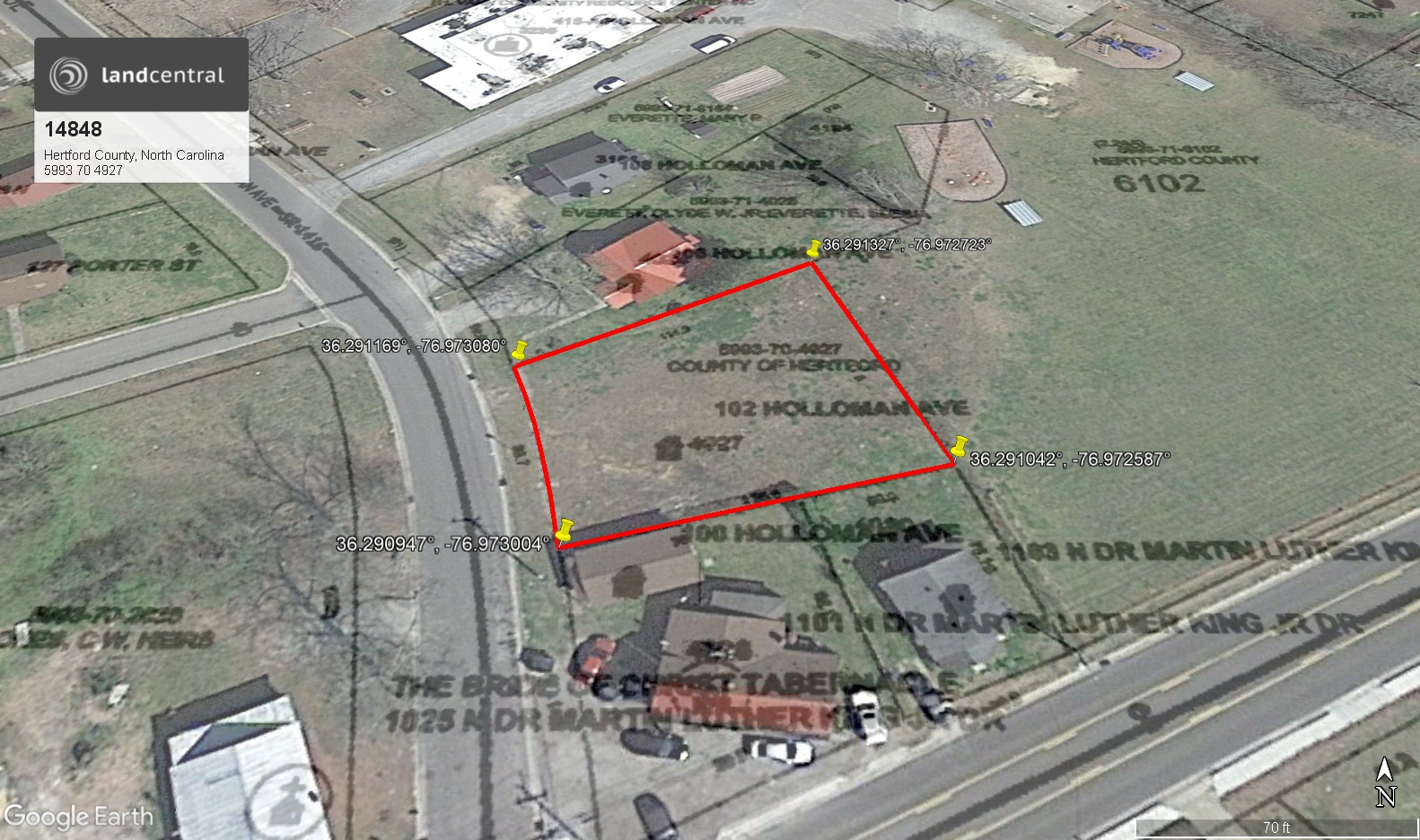 That certain lot or parcel and all improvements thereon known as 102 Fairground Road, Ahoskie, Hertford County, North Carolina and more particularly described in deed recorded in Book 145, Page 308 of the Hertford County Registry. Said property is bound on the North by .Elesia Everett and Clyde W. Everett, Jr., on the East by Hertford County, on the South by Elesia Everett and Clyde W. Everett, Jr. and Timothy Harrell and bound on the West by Fairground Road, now known as Holloman Road. The Hertford County Tax Department identification number for the subject tract is 5993-70-4927; and is further described as the lands conveyed by deed dated May 29, 2012 from Stephanie B. Irvin, Commissioner, to Hertford County, recorded at Book 743, page 407, Hertford County Registry. |