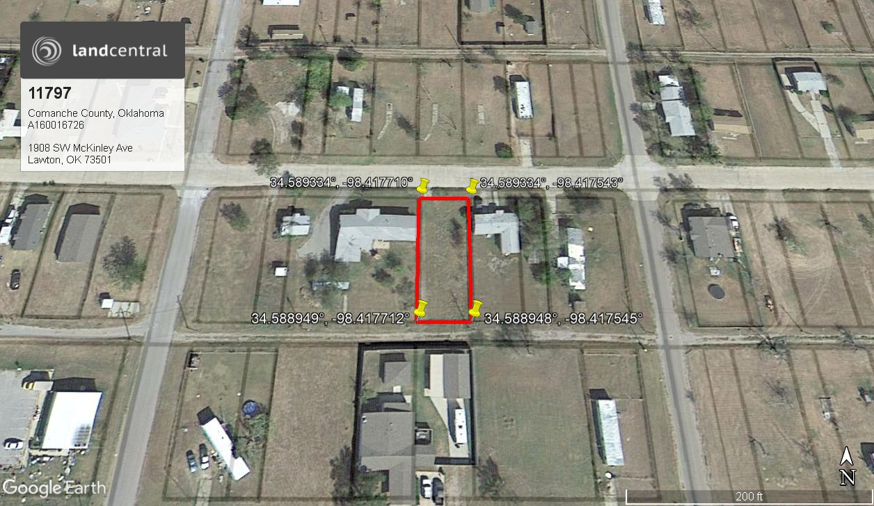 The property sits at 1908 SW McKinley Ave, Lawton, OK 73501 and is nestled up to 2 decent homes in a well-established neighborhood. There was a time long ago that a home was located on this property that has since been removed and cleared away. This means that all the city utilities were once hooked up to this property as well and are able to be again once a home is placed on the lot. The area zoning does allow for a single-family dwelling to be placed on the property that does include the placement of a mobile home or trailer. The lot does have a driveway in place and is mostly flat and cleared of most vegetation. This will allow quick work in getting new home placed or built on the property. Since the property is within the city limits of Lawton you don’t have to travel to far to find all the city amenities you may need such as grocery, food and gas.