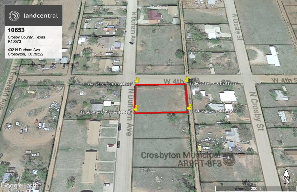 Come love this small town in Texas, population 1683 (as of 2014.) This corner lot is located at 432 N Durham Avenue. Lubbock, Texas is about 38 miles west of the town. Crosbyton is a great farming community, dedicated to improving the lives of their citizens. The city offers trash, sewer and water. If you are looking for small town living, this might be the property for you.