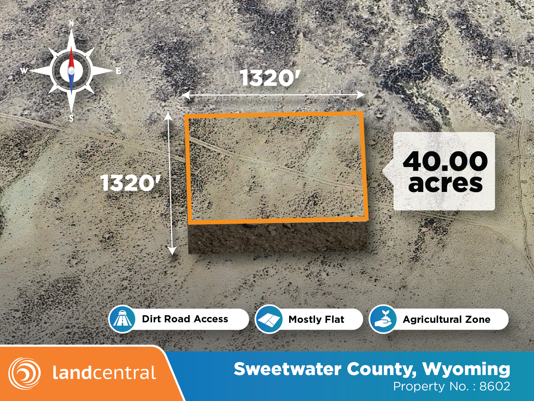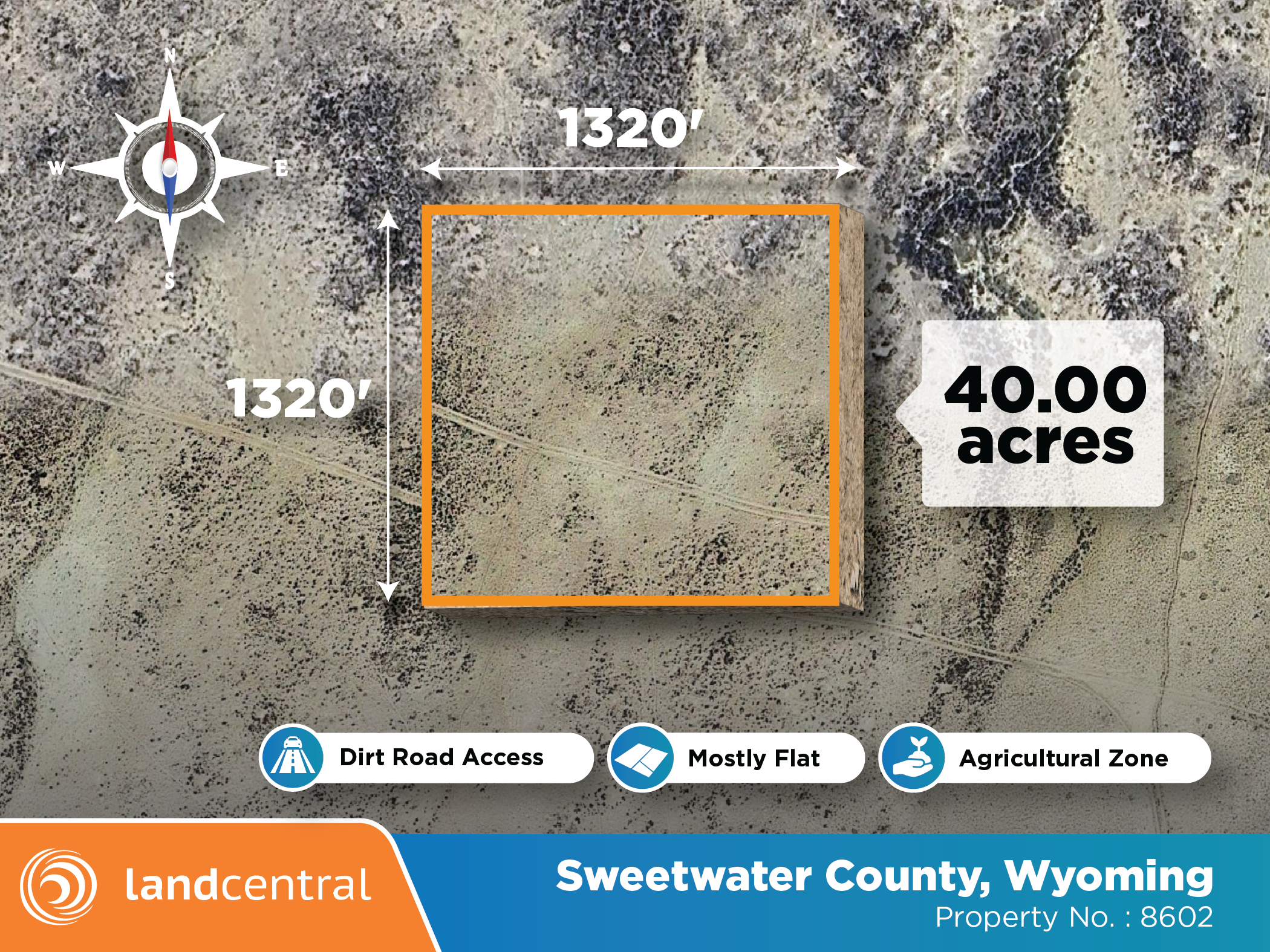 40 +/- acres legally described as: The Southeast one-quarter of the Southwest one-quarter of Section 29, Township 23 North, Range 90 West, 6th Principal Meridian, Sweetwater County, Wyoming. Subject to a perpetual easement and right of way for ingress and egress purposes, installation, construction and maintenance of roads and electrical transmission and communication lines, lying within the afore-described tract, measuring eight (8) feet in width and extending along all boundaries thereof. Further subject to any right-of-way of record or apparent upon the ground. |